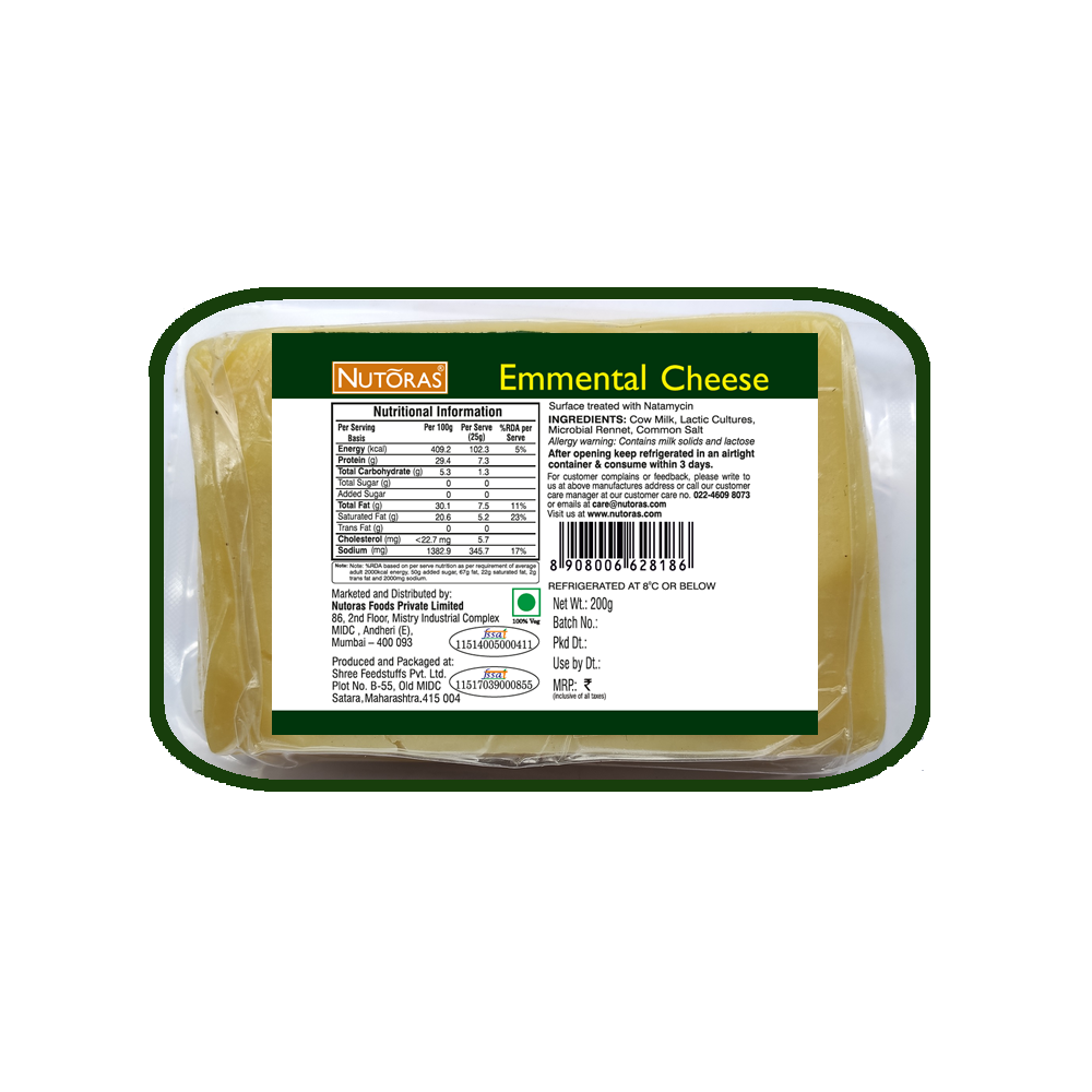 This cheese is free from artificial colors and preservatives and is suitable for vegetarians, making it a natural and healthy option. So whether you're looking to snack on a delicious and nutritious cheese or add some extra flavor to your favorite dishes, Nutoras Cheese Emmental Block is a premium and natural choice that is sure to satisfy your taste buds.