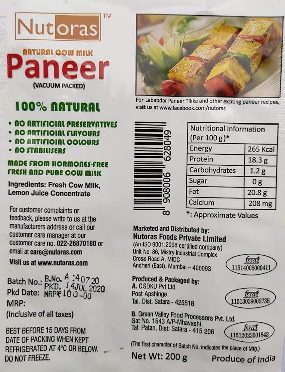 - Packaging: Nutoras paneer is sold in vacuum-sealed packs that help to retain its freshness and flavor.